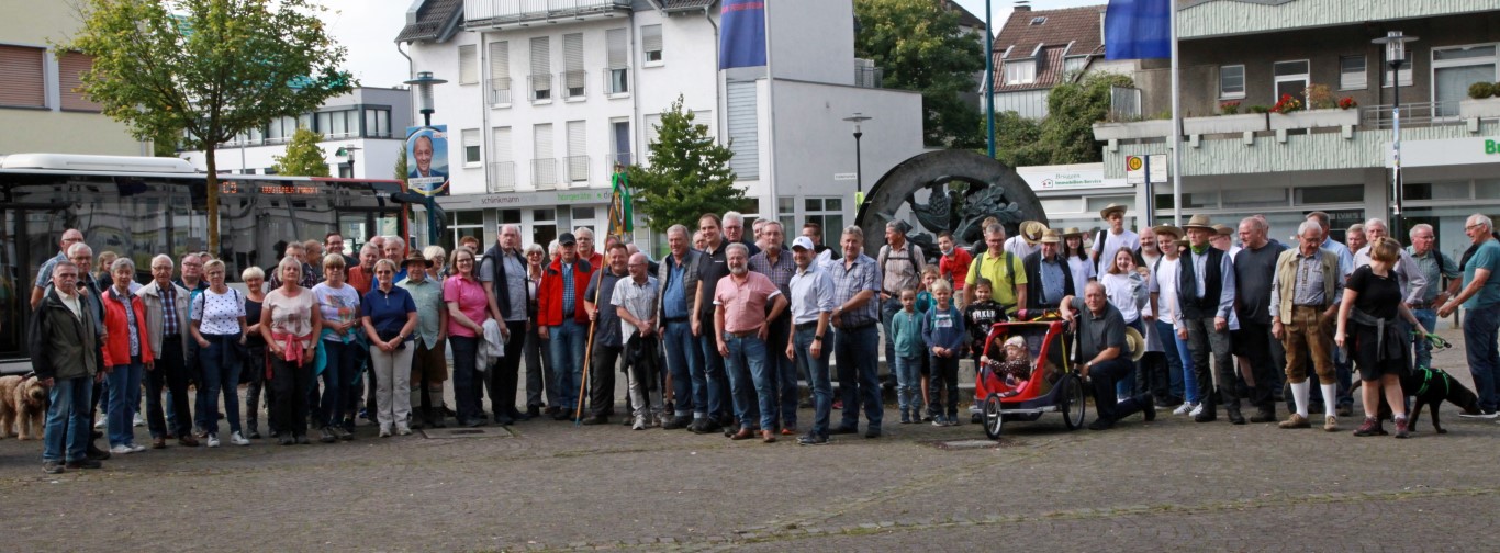 Helmut Melchert, Vorsitzender des Heimatkreises Hüsten e. V., begrüßte am 18.09.2021 insgesamt 120 Teilnehmer in Hüsten zum beim 364. Schnadegang. Von der Petri Kirche, vorbei am „Hexentanzplatz“, führte Wanderführer Martin Hamm die muntere Truppe Richtung Müschede.