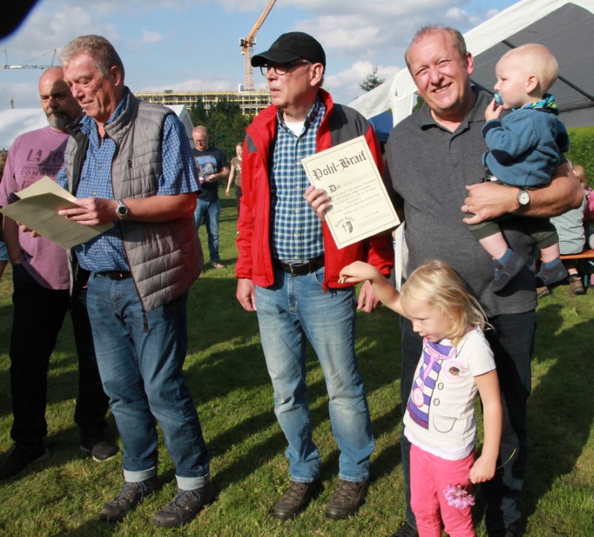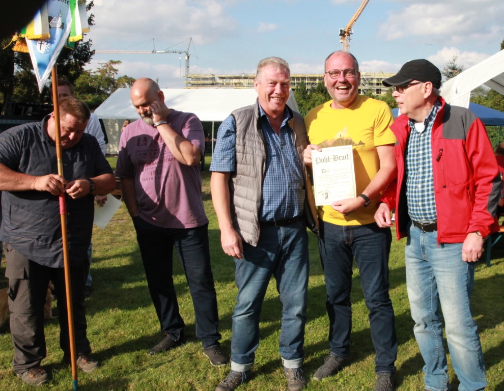 Das Pohläsen fand dann auf dem von der Bildhauerin Stefanie Schröter geschaffenem Grenzstein an der Grenze von Müschede statt. Weiter führte der Weg an der Kleingartenanlage über den Spreiberg und Flammberg zum Festplatz des FC Sonnenburg. Dieser Verein ist in diesem Jahr, zum 90. Vereinsgeburtstag, Ausrichter des Schnadegangs.