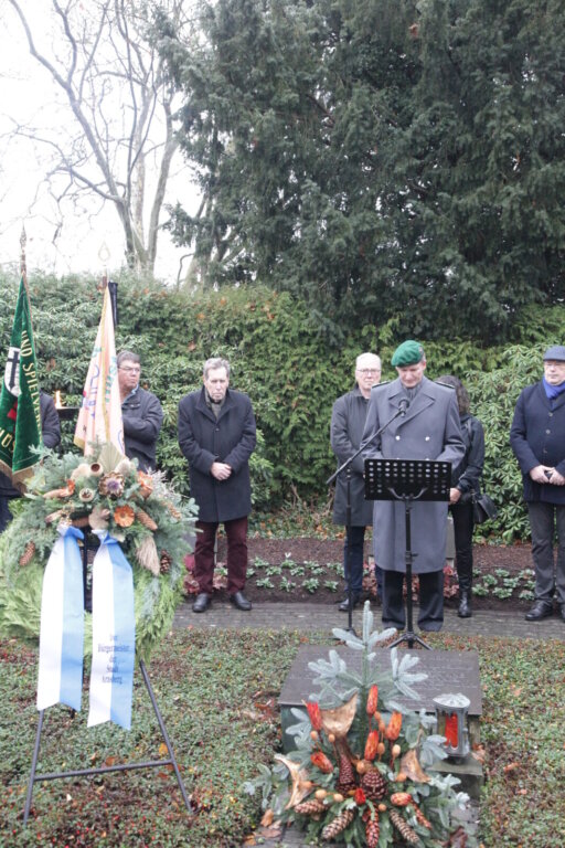 Dr. Patrick Sensburg, Präsident des Reservistenverbandes in Deutschland, hob in seiner Ansprache hervor, wie wichtig das gemeinsame Gedenken gerade in angespannten Zeiten sei. Musikalisch umrahmte Romano Romagnoli die Veranstaltung mit stimmungsvollen Trompetensoli, die für einen würdigen Rahmen sorgten.