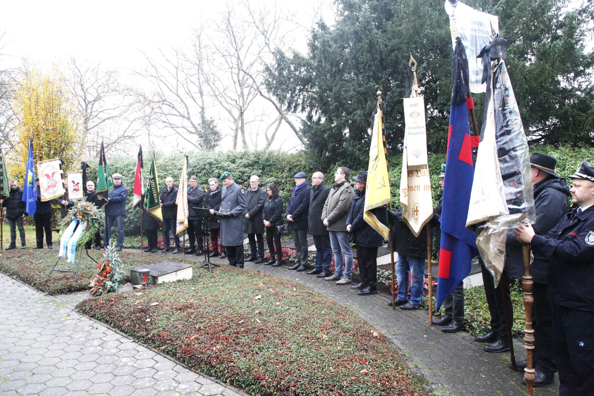 Zahlreiche Bürgerinnen und Bürger sowie Vereinsvorstände mit ihren Fahnenabordnungen versammelten sich am Mahnmal für die Kriegstoten auf dem St.-Petri-Friedhof in Hüsten, um gemeinsam den Volkstrauertag zu begehen. Helmut Melchert, Vorsitzender des Heimatkreises Freiheit Hüsten e. V., begrüßte die Anwesenden herzlich und erinnerte daran, dass die Gedenkstätte vor 30 Jahren durch die Initiative des Heimatkreises – ausschließlich mit privaten Spenden und ohne öffentliche Zuschüsse – errichtet wurde.