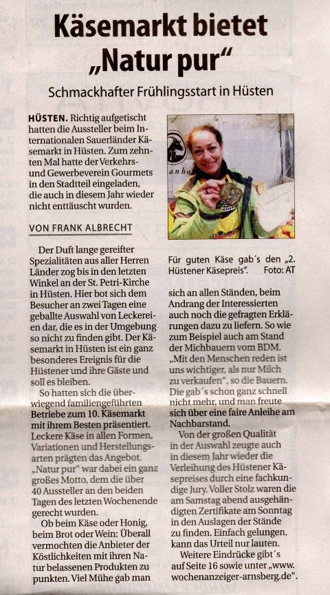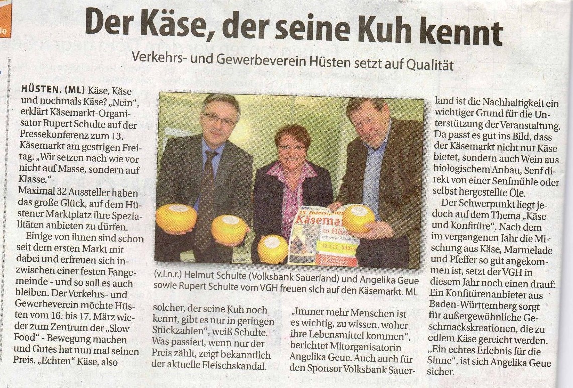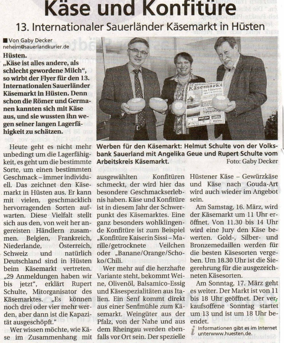 13. Internationaler „Sauerländer Käsemarkt“ am 16. und 17. März 2013