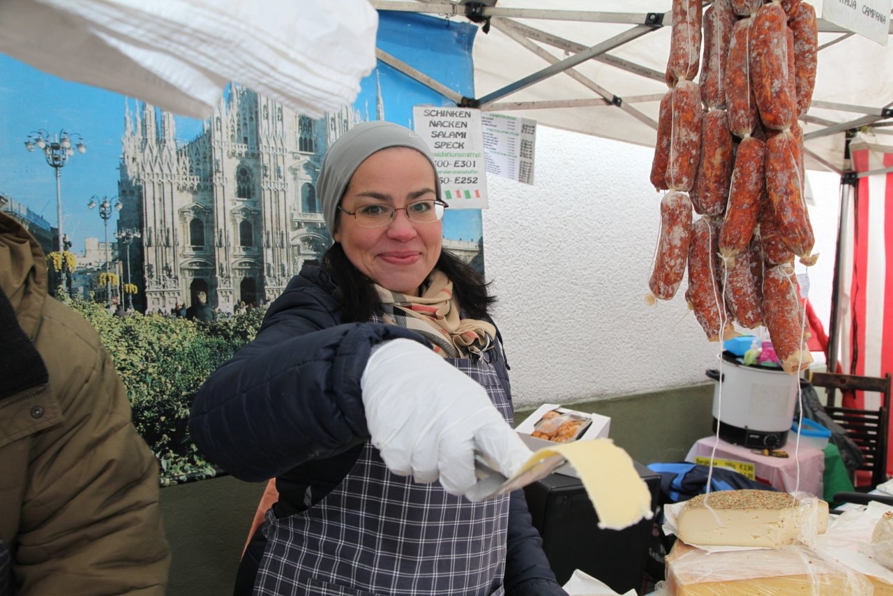 Zum internationalen Käsemarkt in Hüsten werden Käsespezialitäten von bäuerlichen Käsereien, die ihre Produkte überwiegend direkt vermarkten, angeboten.
