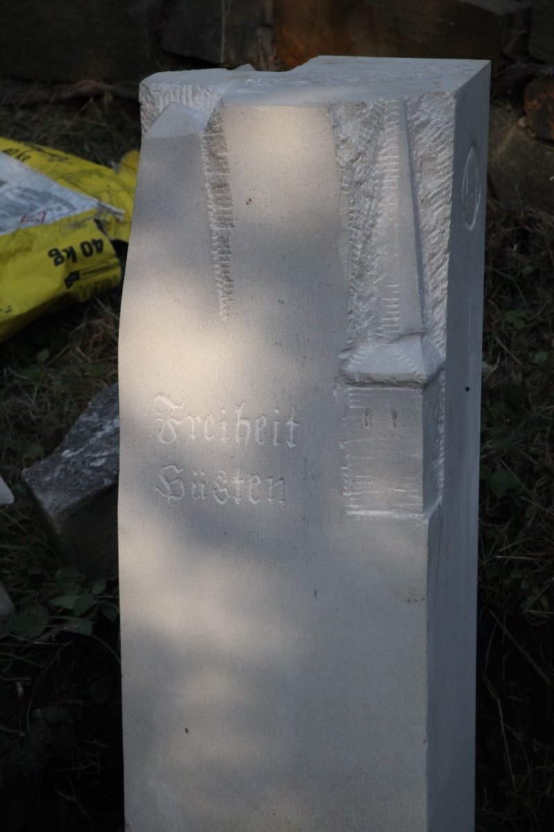 Der neue Grenzstein zwischen Hüsten und Müschede