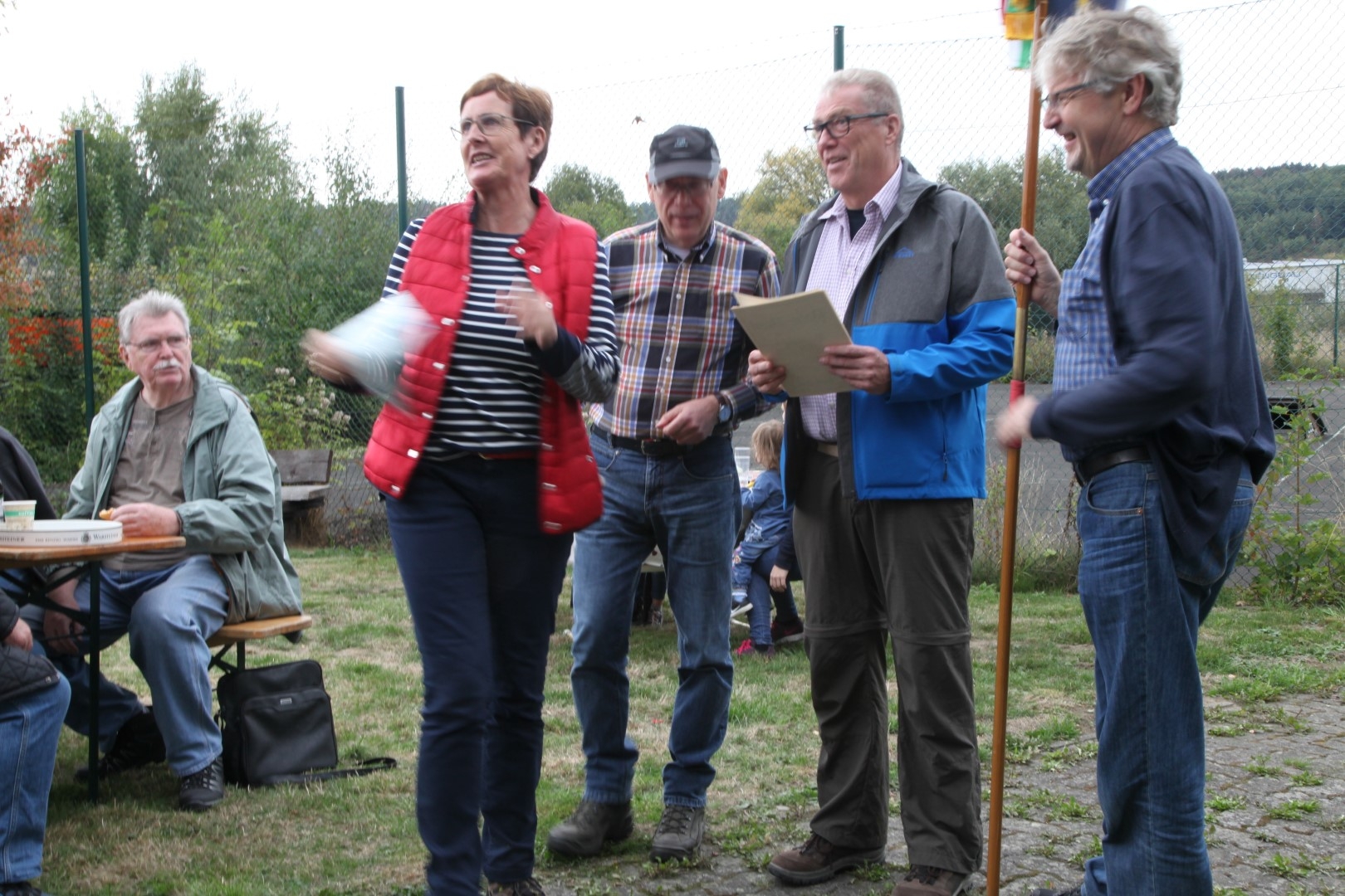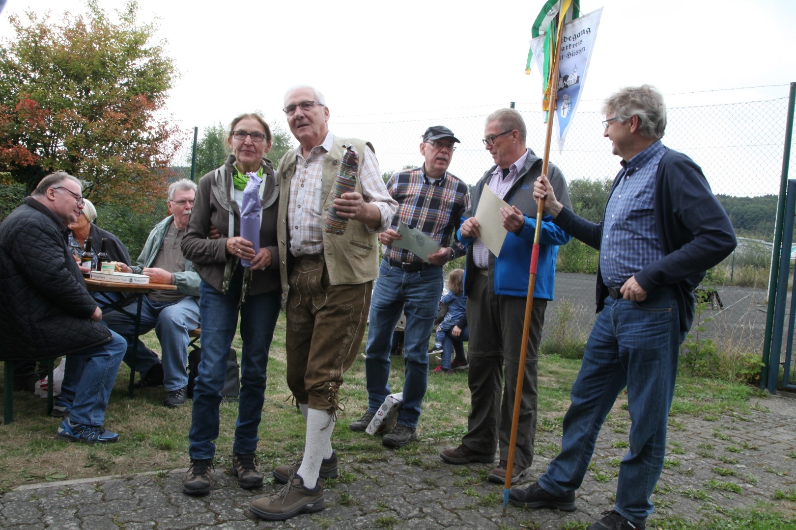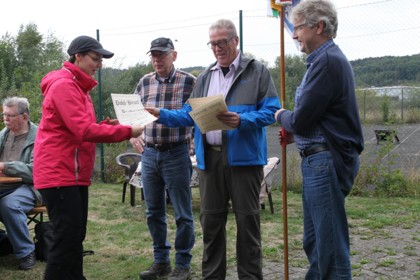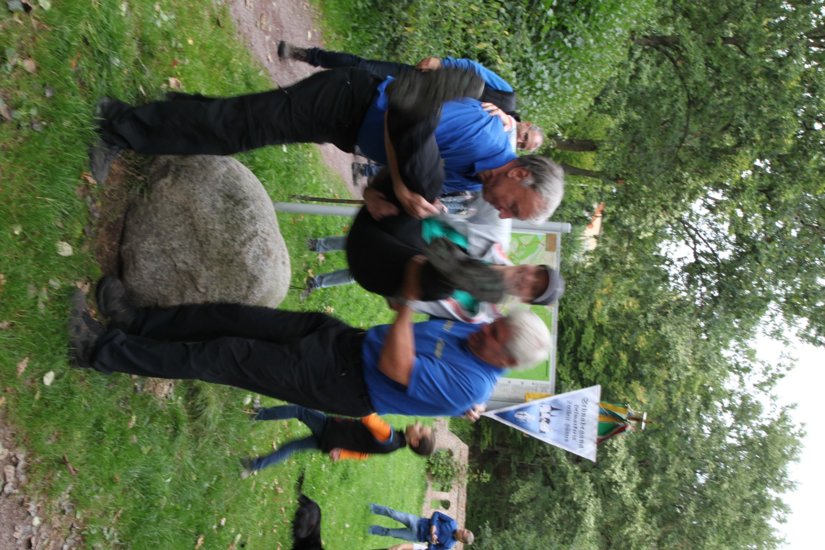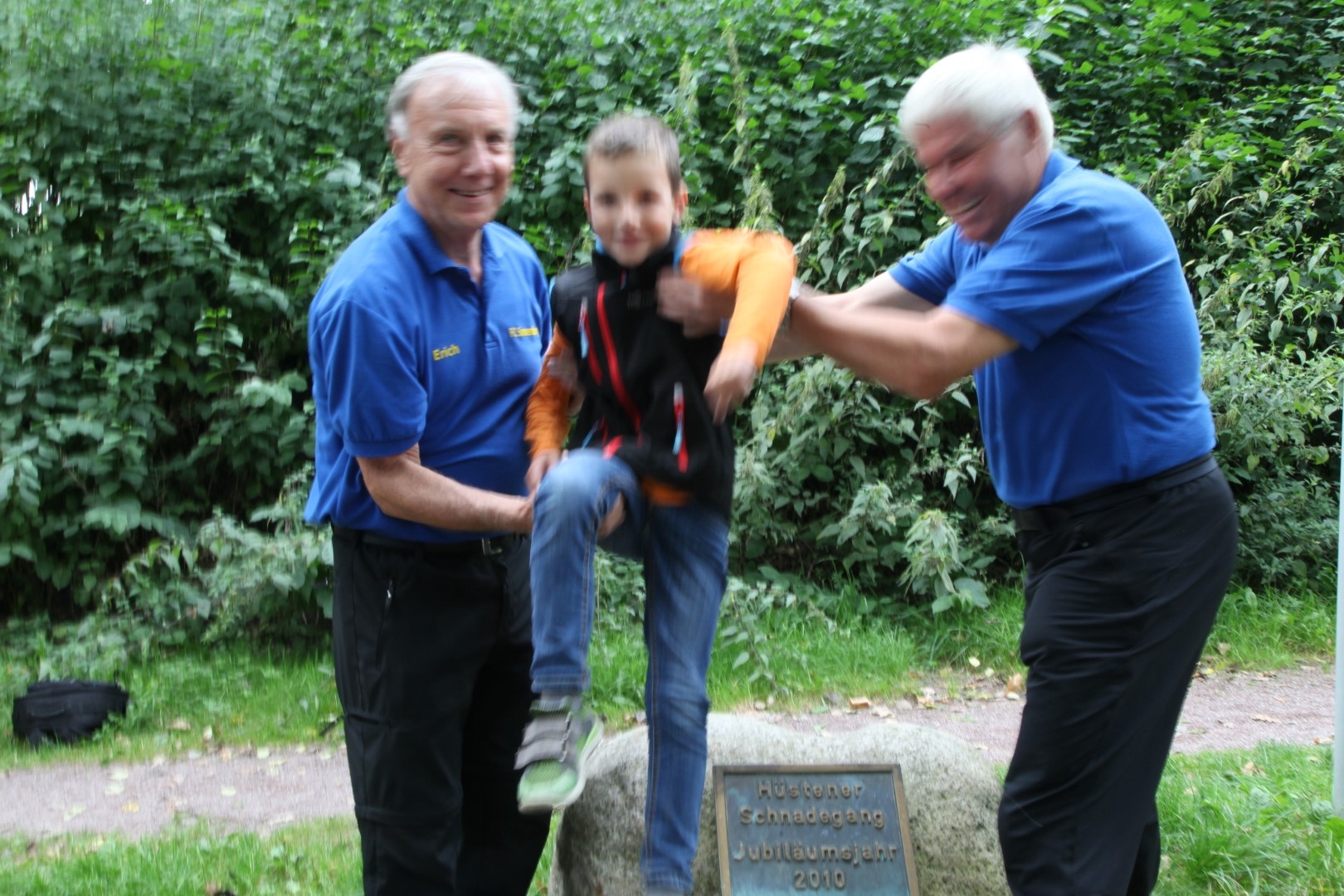 Samstag den 16.Sept.2018 um 13.00 Uhr startete in Hüsten der 361 Schnadegang. Bei guten Wanderwetter ging es für die 83 Teilnehmer, durch den Solepark zum Breloh und über die „Seilbahn“ bis zur Grenze nach Neheim. Klaus Klinkemeier vom SGV Hüsten erklärte die Besonderheiten an der Wanderstrecke. Nach einer Kurzen Rats am “ Alten Holzweg “ ging es zum Rathaus, wo an dem Hüstener Grenzstein, die erstmalig am Schnadegang teilnehmenden den alten Brauch des Pohäsenz kennenlernten. Später beim gemütlichen Ausklang auf dem Vereinsgelände des TUS Hüsten, wurden die gepohlästen, mit einer Urkunde ausgezeichnet. Der jüngste Teilnehmer mit 7 Jahren bekam, ebenso wie die älteste Teilnehmerin ein Präsent von Helmut Melchert und Wolfgang Klinkemeier überreicht.