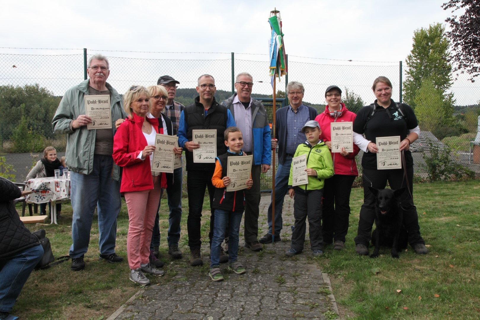 Samstag den 16.Sept.2018 um 13.00 Uhr startete in Hüsten der 361 Schnadegang. Bei guten Wanderwetter ging es für die 83 Teilnehmer, durch den Solepark zum Breloh und über die „Seilbahn“ bis zur Grenze nach Neheim. Klaus Klinkemeier vom SGV Hüsten erklärte die Besonderheiten an der Wanderstrecke. Nach einer Kurzen Rats am “ Alten Holzweg “ ging es zum Rathaus, wo an dem Hüstener Grenzstein, die erstmalig am Schnadegang teilnehmenden den alten Brauch des Pohläsens kennenlernten. Später beim gemütlichen Ausklang auf dem Vereinsgelände des TUS Hüsten, wurden die gepohlästen, mit einer Urkunde ausgezeichnet. Der jüngste Teilnehmer mit 7 Jahren bekam, ebenso wie die älteste Teilnehmerin ein Präsent von Helmut Melchert und Wolfgang Klinkemeier überreicht.