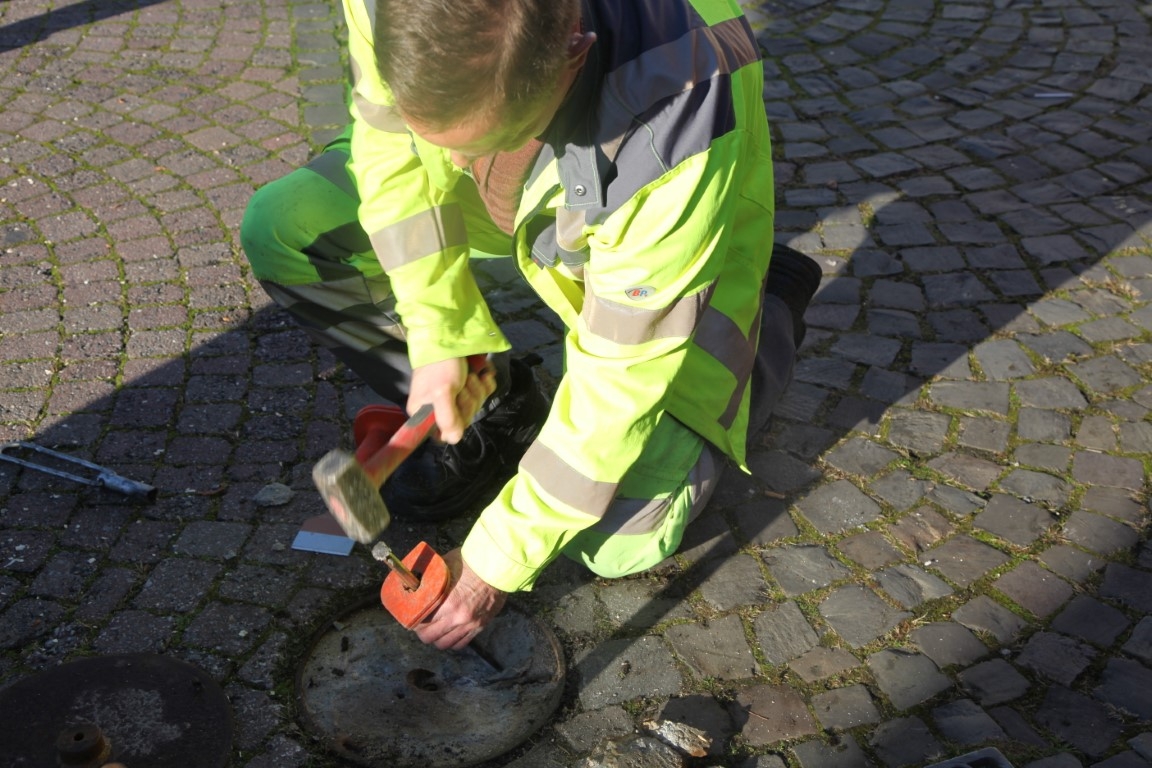 Der Bereitschaftsdienst der Stadt Arnsberg wurde gerufen und mit vereinten Kräften wurde der Beton aus der Bodenhülse entfernt. Mit einer Verzögerung von ca. 2,5 Stunden wurde der Baum in der Bodenhülse befestigt. Jetzt soll die Beleuchtung Anfang der Woche installiert werden.
