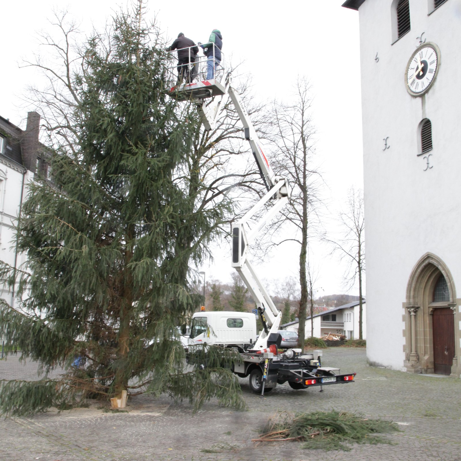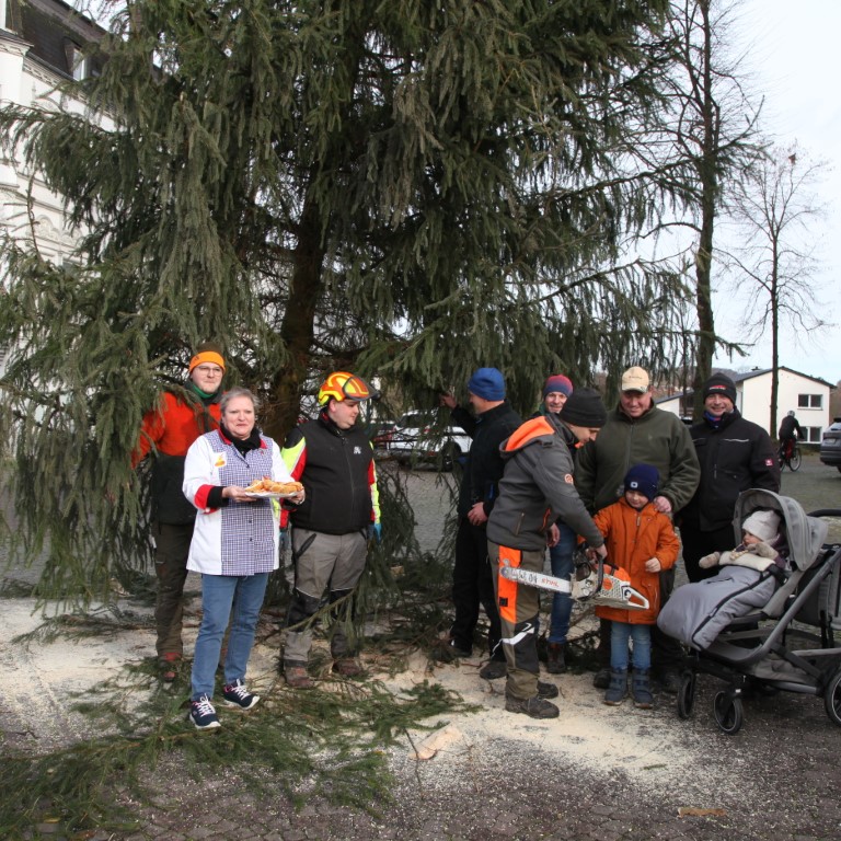 Heute Morgen, am 23. November 2024, wurde die Tanne im Breloh gefällt und in bewährter Weise vor der St. Petri Kirche aufgestellt. Die „Baumtruppe“ unter der Leitung von Thomas Köhler führte die Arbeiten durch. Carsten Fuchs transportierte die Tanne auf einem Tieflader vom Breloh zur St. Petri Kirche.
