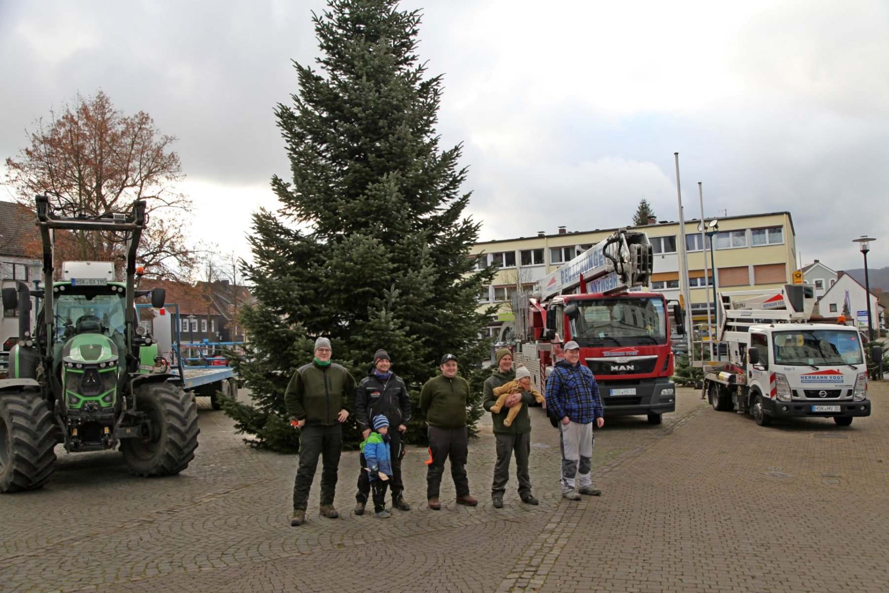Pünktlich zum 1. Advent wurde von dem Hüstener Baum-Team (Heimatkreis Freiheit Hüsten, Schützenbruderschaft) wieder eine Nordmanntanne aufgestellt, die eine Höhe von 14m erreicht und ein stattliches Gewicht von einer Tonne hat.