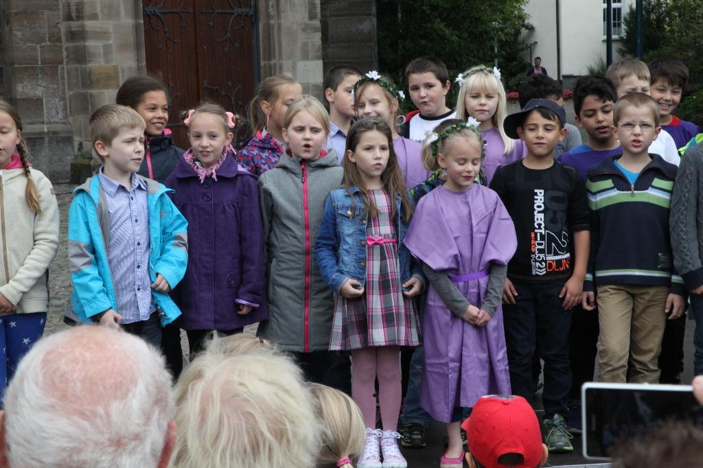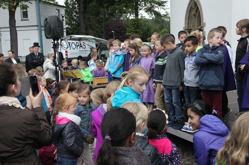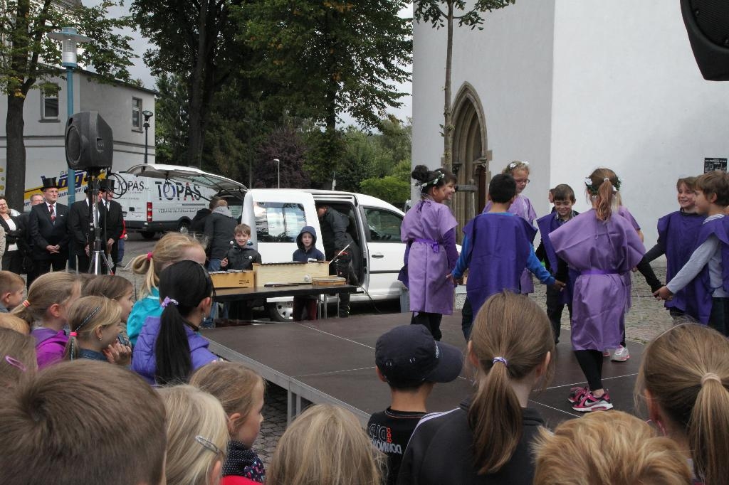 Im Abschluss haben die Kinder der Mühlenberg Schule in einem anschaulichen Spiel an diese großzügige Waldschenkung des Grafen Gottfried, den zahlreichen Besuchern vorgestellt.