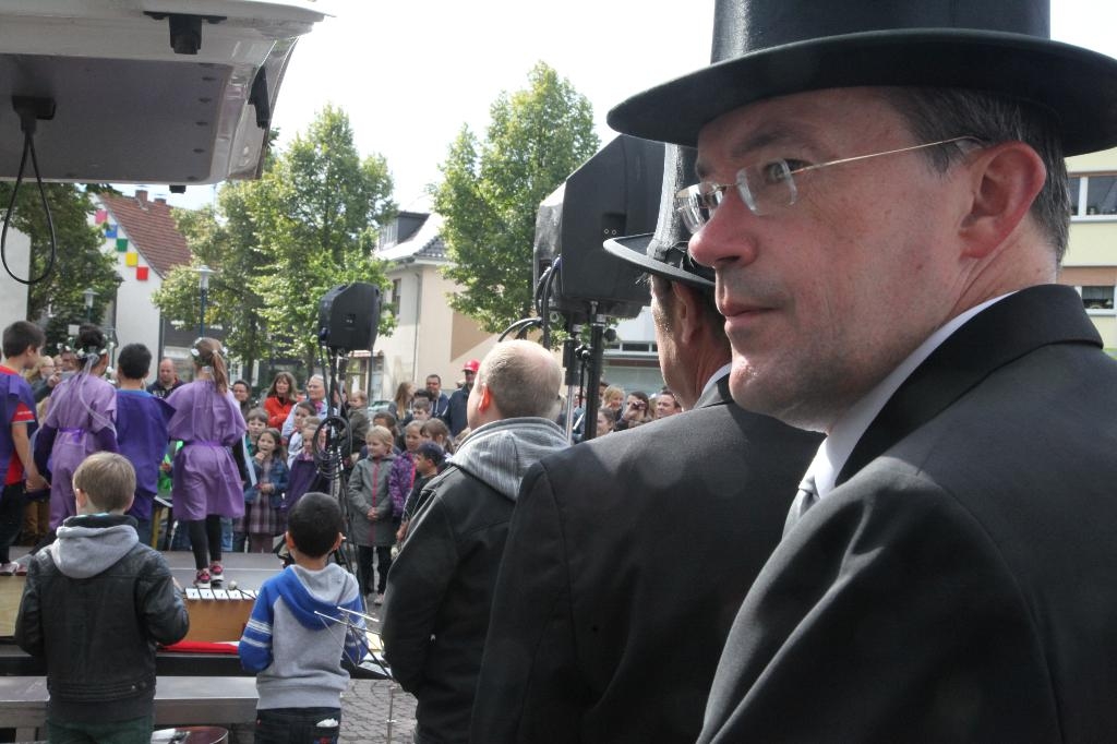 Der Vorsitzende des BEzirksausschusses Hüsten, Günter Gossler begrüßte die zahlreichen BEsucher auf dem Kirchplatz der St. Petri Kirche.